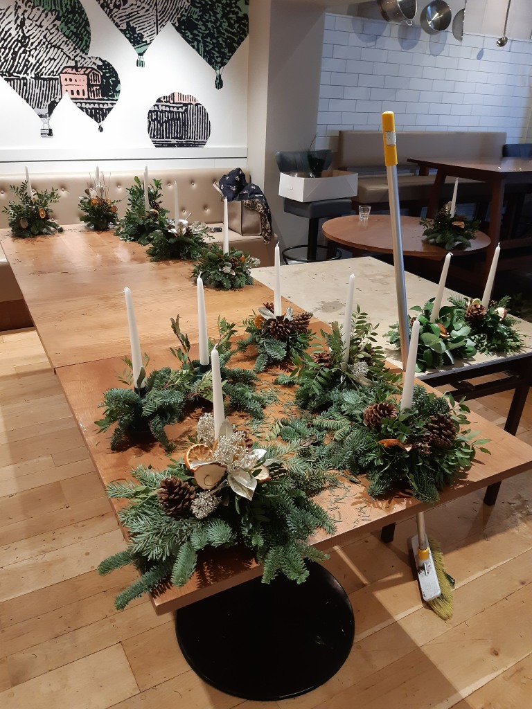 We started the party season early this year, by spending a very enjoyable few hours at the Aztec Hotel. Last week’s leisurely lunchtime social, kicked off with a seasonal flower arranging demo and practical crafting session, which was then followed by a very nice Christmassy lunch. Many thanks to Angela for arranging this lovely outing 🙂
